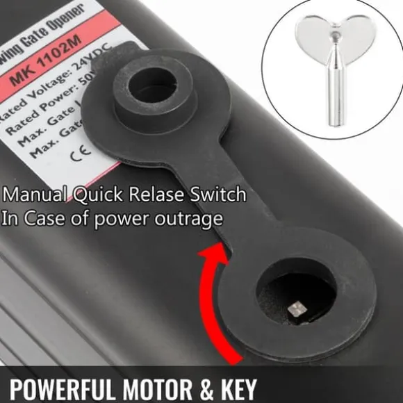 Denna portöppnarset körs av en 80 W motor med starkt tryck. Sätt in och vrid om låsnnyckeln för att öppna porten vid strömavbrott.