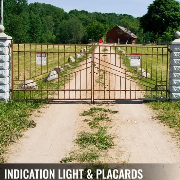 Denna portöppnare har en blinkande röd lampa för visning och varningsskyltar på båda sidor av porten. Använd en låsknapp för att öppna porten vid strömavbrott.
