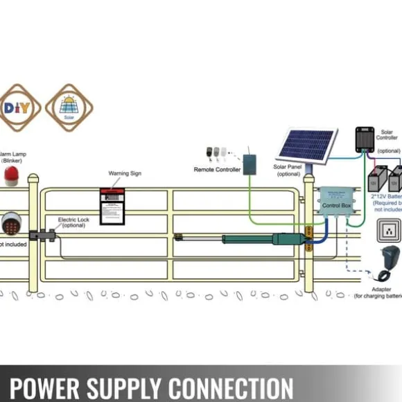 Idealisk för hus, gård, fabrik, affär, villa, kommun, jordbruk, gård, ranch osv. Tips: En 24V likströmsbatteri eller 2 st 12V likströmsbatterier (ingår ej) krävs för portöppnaren. 30 m.