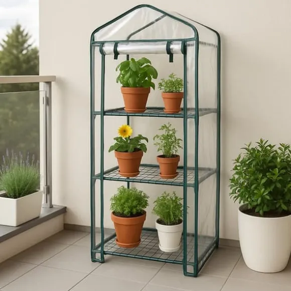 Ge dina växter och plantor den bästa starten på livet med detta praktiska miniväxthus, oavsett årstid. Detta miniväxthus mäter 59 x 39 x 160 cm och är perfekt för små utrymmen med gott om plats och gott om hyllor för att organisera dina växter. Det slitstarka, vattentäta plastskyddet skyddar dina växter från väder som regn, frost, hårda vindar och UV-strålar. Växthuset kan användas inomhus och utomhus och rymmer en mängd olika växtstorlekar.