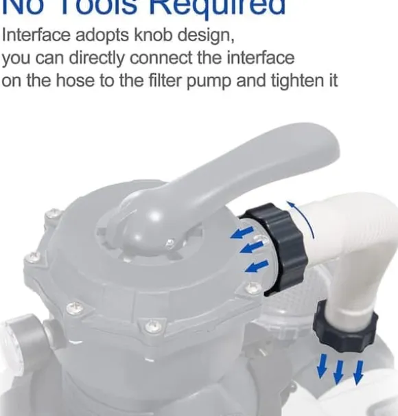Slanganslutningen har en skruvknappdesign som gör att den snabbt och enkelt kan kopplas till filterpumpen utan extra verktyg. Enkel att montera och demontera.