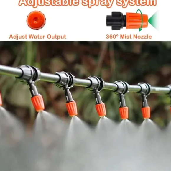 Utrustad med två typer av sprutmunstycken som stöder mikrodroppar, dimma och bevattning i olika lägen. Varje munstycke kan justeras individuellt för vattenflöde och sprutmönster, vilket exakt tillgodoser olika växters behov.