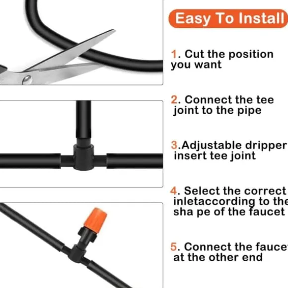 Detta droppbevattningssystem är tillverkat av högkvalitativ ABS-plast, som är robust och hållbar. Det påverkas inte av solljus eller dåligt väder, behåller formen och sväller inte vid långvarig användning, vilket säkerställer systemets stabilitet och livslängd.