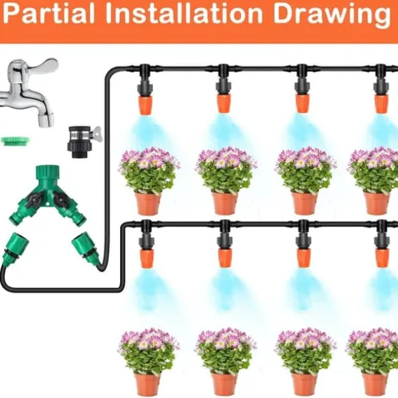 Vetenskapligt designad för att spara upp till 75 % vatten. När systemet är installerat bevattnar det automatiskt, vilket minskar behovet av manuell hantering. Du behöver inte oroa dig för att växterna torkar ut när du är borta.