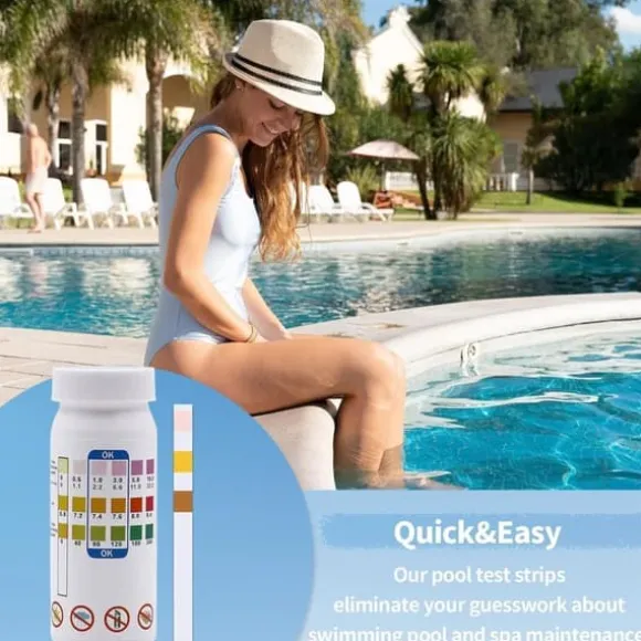 Håll ditt pool- och spavatten rent med detta 50-pack 3-i-1 testremsor! Snabbt, exakt och enkelt att använda för att mäta pH, alkalinitet och fritt klor.