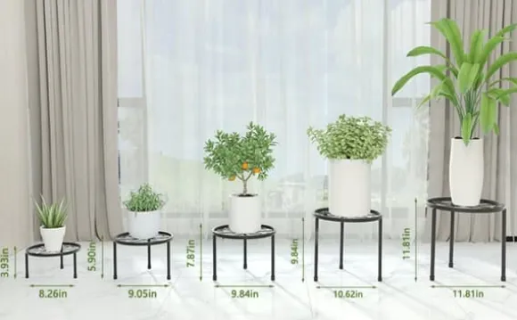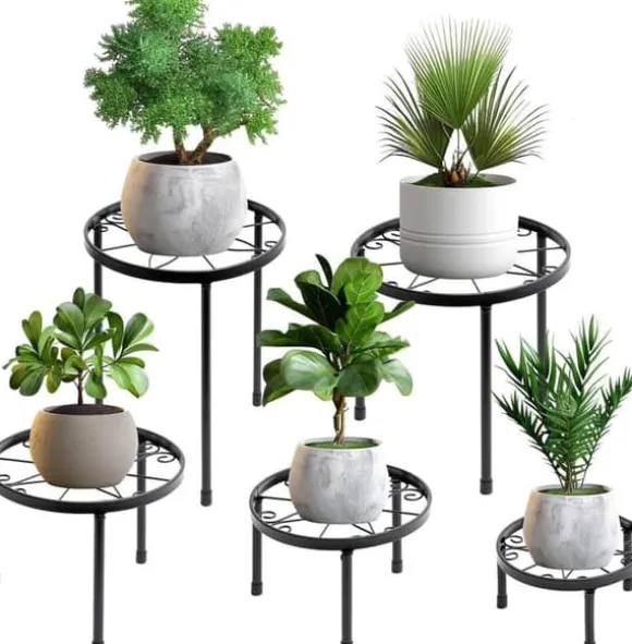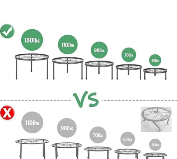 Metallväxtställ: Erbjuder fem storlekar, med en maximal viktkapacitet på upp till 130 pund, vilket passar olika växtbehov.