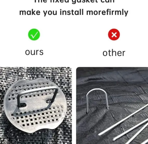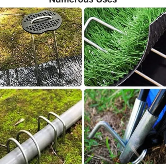 Markspikarna och buffertskivorna används för att fästa ogräsdukar, skuggnät, växthusdukar, konstgräs eller tält. De är lämpliga för trädgårdar, växthus, camping eller jordbruksprojekt och kan användas för att säkra slangar, fruktträd eller insektsnät, vilket bidrar till organiserad och effektiv odling.