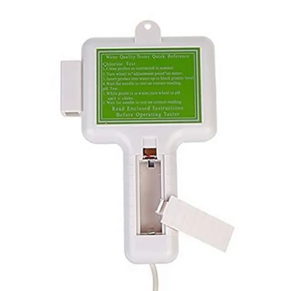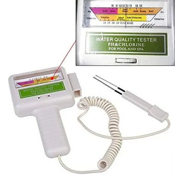 Denna PC-101 testare mäter pH (7.2-7.8) och klor (1.2-1.7 ppm) med stor display för enkel avläsning. Lätt, kompakt med hänghål och hållbar plastskal. Perfekt för pooler, spa och akvarier (endast sötvatten).