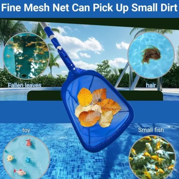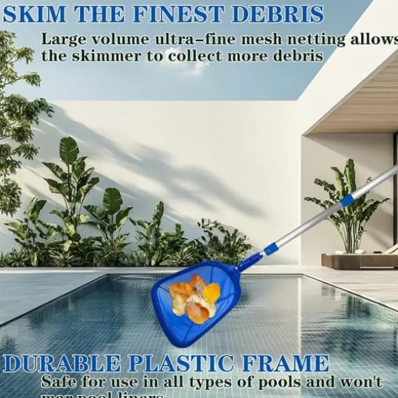 Ultrafint nät: Nätet har mycket täta maskor som effektivt fångar även de minsta smutspartiklarna. Inga löv eller små partiklar slinker igenom, vilket säkerställer en grundlig rengöring och kristallklart poolvatten.