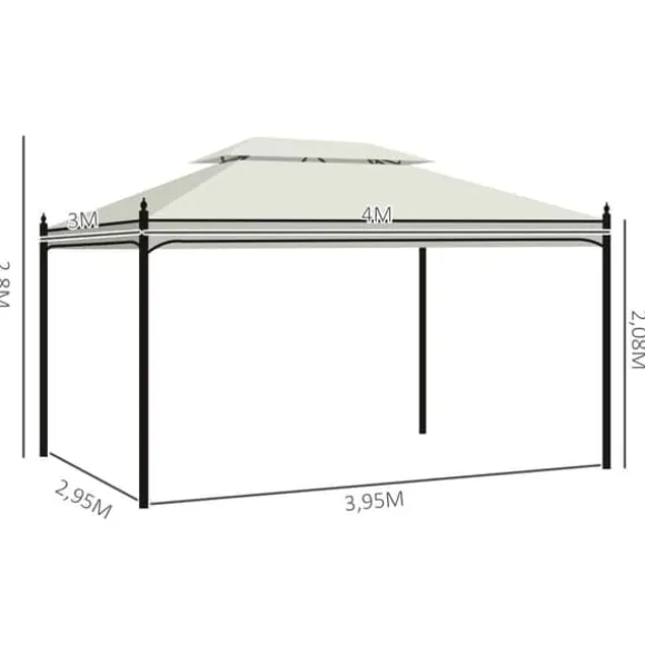 – Lyxig metallpaviljong: Rymlig paviljong med elegant dubbeltak. Med avtagbara sidoväggar av polyester är den den perfekta platsen att koppla av i din trädgård.