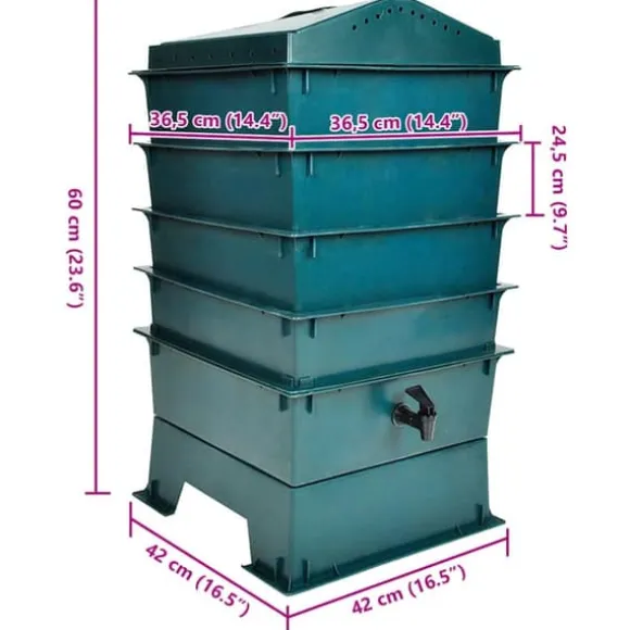 Kompostering med maskar gör att du kan förvandla ditt köksavfall, papper och kartong till näringsrik jord för dina växter. Med vår masskompost blir hela processen både snabbare och enklare. Tillför helt enkelt en handfull maskar till ditt organiska avfall i den nedersta behållaren. Maskarna kommer börja processa maten. När den nedersta brickan är full, lägg till nästa. Maskarna migrerar uppåt till den nyaste matkällan och lämnar efter sig en nedre bricka full av näringsrik kompost. Allteftersom avfallet bryts ner, filtreras fukten genom systemet och tar med sig näringsrika partiklar. Detta gör det möjligt att tappa organisk flytande näring direkt från tappen.