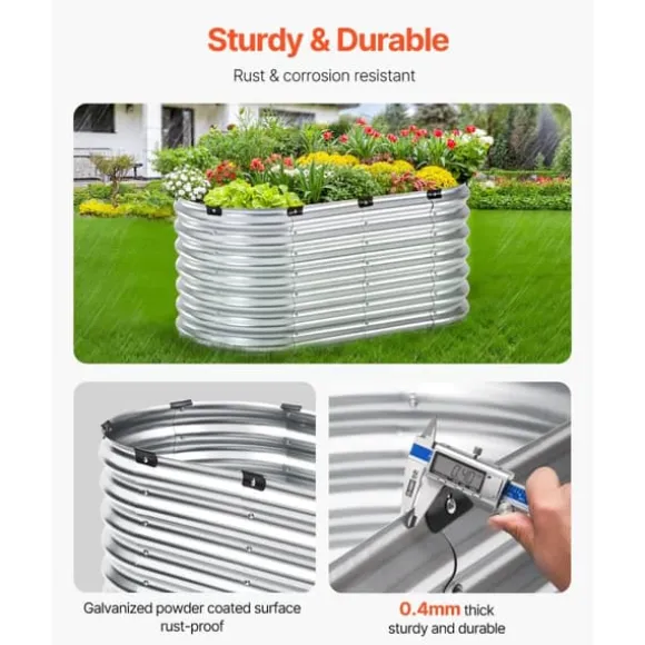 Denna upphöjda trädgårdssäng i metall har 0,4 mm tjocka sidopaneler tillverkade i metall. Ytan är belagd med galvaniserat pulver för att ge rost- och korrosionsbeständighet, vilket säkerställer långvarig användning utomhus. Du kan vara säker på att denna säng kommer att hålla under lång tid!