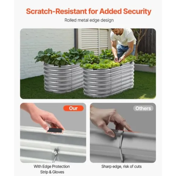 För din säkerhet har vår upphöjda planteringslåda rullade kanter med kantskydd som förhindrar handskador eller repor. Använd den med sinnesfrid och njut av trädgårdsarbete utan oro!