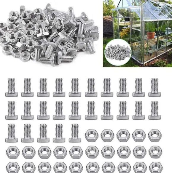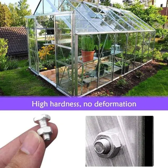 Hög hållfasthet aluminium: Muttrarna och bultarna är tillverkade av högkvalitativ aluminium som erbjuder utmärkt motståndskraft, vilket garanterar tillförlitlig prestanda i krävande växthusmiljöer.