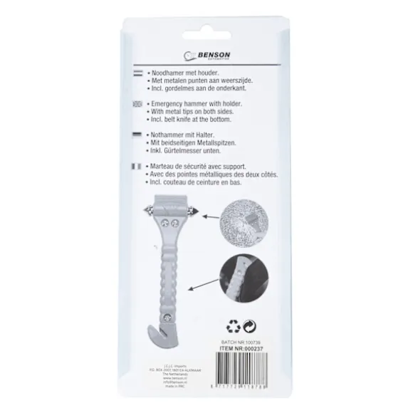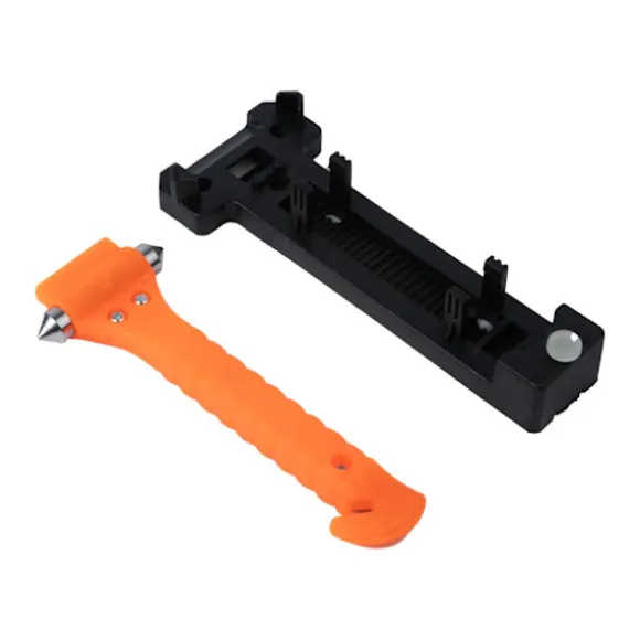 Den plastiska hållaren kan monteras i din bil så att säkerhetshammaren kan nås snabbt och enkelt.