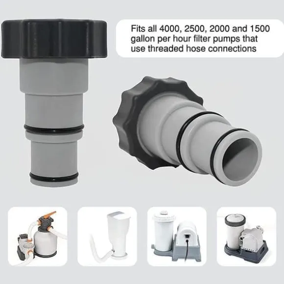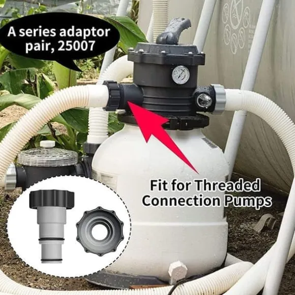 Passar bra ihop med andra pumpar med gängade kopplingar, inklusive filterpumpar med kapacitet på 15 000, 9 500, 7 500 och 5 700 liter per timme med gängade slanganslutningar.