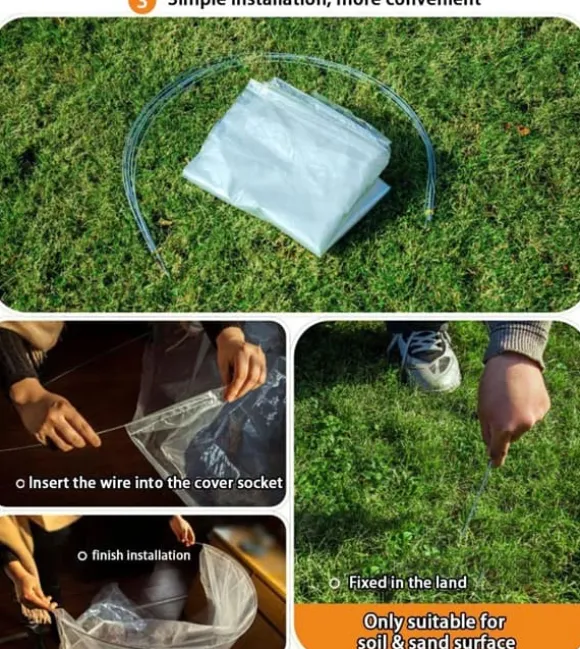 Detta utomhusdrivhus i tunnelform är superenkelt att sätta upp – följ bara medföljande instruktioner för att koppla ihop drivhusbågarna. Bågar, klämmor och markpinnar ingår för extra stabilitet. När drivhuset inte används kan bågarna demonteras och PVC-skyddet vikas platt för enkel förvaring och transport.