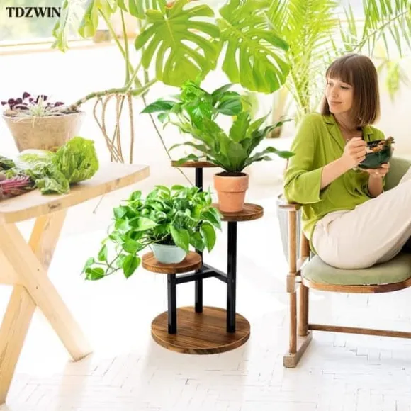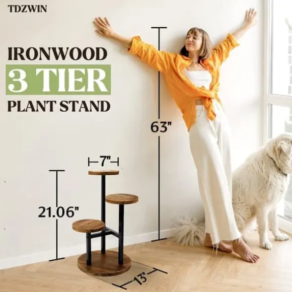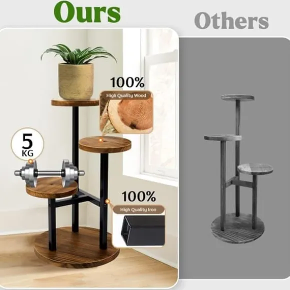 Unikt växtställ i modern design: Det uppgraderade växtstället i järnträ är en snygg inredningsdetalj för vardagsrum, sovrum eller kontor med sin moderna och platsbesparande design. Med högkvalitativa material och fint hantverk ger det en behaglig känsla till hemmet. Med detta växtställ kan dina växter placeras var som helst – inga fler tråkiga hörn! Förutom växter kan stället även användas till småsaker som leksaker eller böcker.