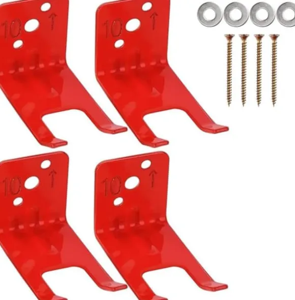 2. Brandsläckarfästet för 10 kg levereras med grundläggande monteringstillbehör inklusive 4 skruvar och 4 brickor som är lätta att installera. Markera bara hålet i väggen, placera sedan brickan och skruva fast den i hålet i mitten av fästet. Dra slutligen åt skruvarna med en skruvmejsel. När den är installerad kan du hänga upp och ta bort brandsläckaren på några sekunder för enkel användning och förvaring.