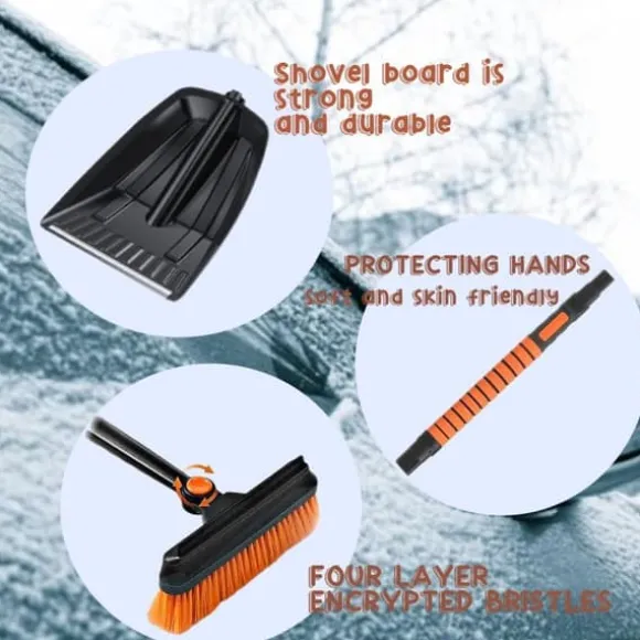 Bärbar isskrapa: det är en isskrapa med kvast som du bekvämt kan fälla ihop och bära i bilen utan att ta upp mycket förvaringsutrymme. Praktisk snöskyffelsats för nödsituationer på bilsemestern, i trädgården eller vid snöbyte
