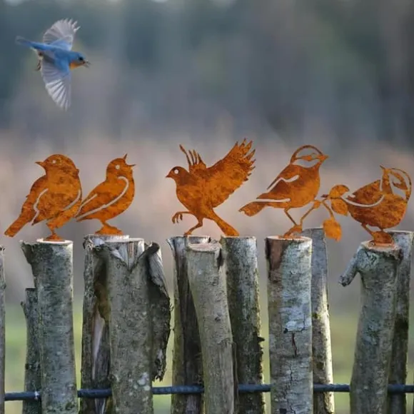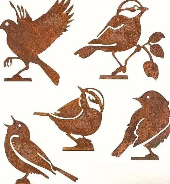 ✔ Rustika fågelsiluetter i metall – Innehåller 5 handgjorda rostiga metallfåglar med en vintage, väderbiten finish. Fem olika poser ger en känsla av liv och rörelse till dessa charmiga trädgårdsdekorationer. Tillverkade av äkta rostig metall som med tiden får en naturligt åldrad patina.