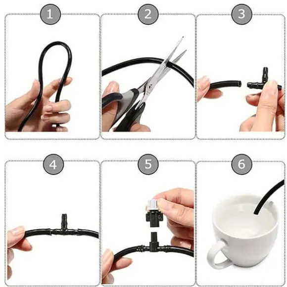 Detta droppbevattningssystem är perfekt för olika behov såsom bevattning av växthus, trädgårdar, planteringar, fuktning av växter samt kylning vid varma dagar.
