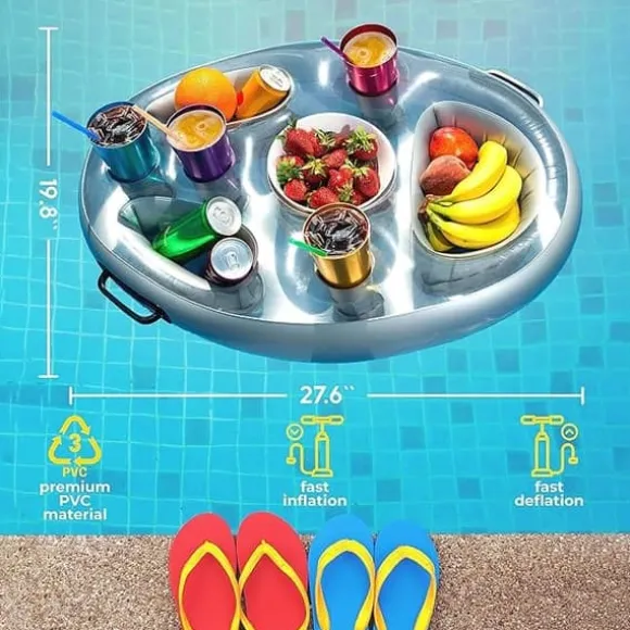 All-in-One Pool Tray: Keep drinks, snacks, and essentials organized with 4 drink holders and 4 additional compartments. Perfect for poolside lounging.