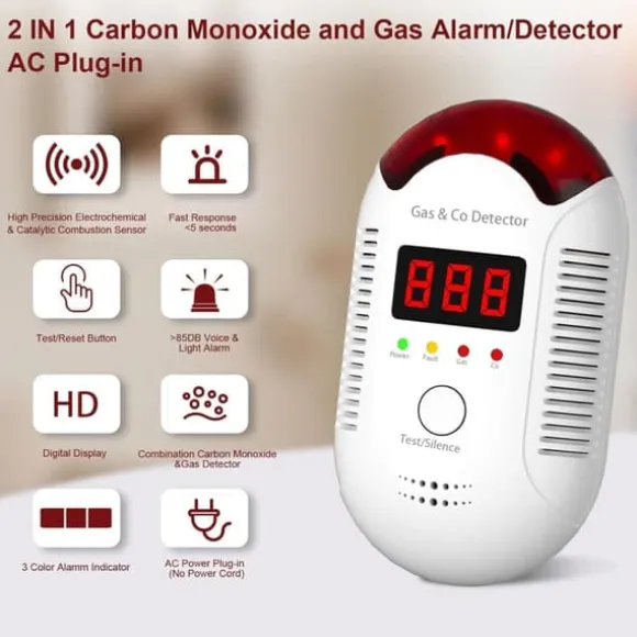 2-i-1 Gas- och Kolmonoxiddetektor – Plug-in Larm För Hem och Husvagn