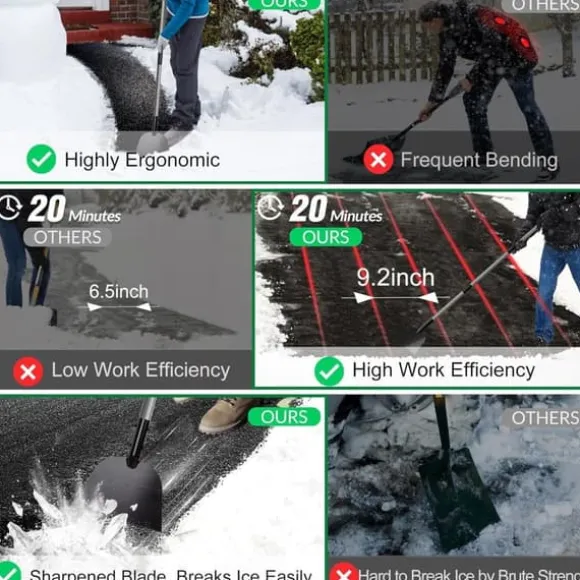 Denna isskyffel har en idealisk längd på 136 cm för en ryggvänlig användning. Skyffeldelen är 23,3 x 15,2 cm, bredare än många andra skyfflar, vilket gör att du snabbare och enklare kan ta bort is och snö från gångvägar, uppfarter och vägar. Bladet har en vass kant på ena sidan som gör det enkelt att skära igenom tjock is. -