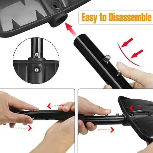 Denna uppgraderade nödsnöskyffel är tillverkad av högkvalitativt polymermaterial som är både miljövänligt och luktfritt. Skyffelbladet i aluminiumlegering gör det enkelt att skotta snö, jord, sand eller grus. Den förstärkta konstruktionen gör skyffeln motståndskraftig mot tryck och fall – perfekt för långvarig användning år efter år.