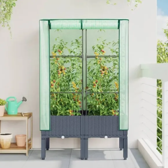 Denna upphöjd odlingslåda med växthusöverdrag är rymlig och har en robust stödram.