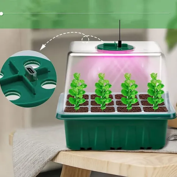 Skapa bästa möjliga miljö för dina fröer och plantor med denna odlingstation med LED-belysning i praktiskt 4-pack. Varje odlingstråg har 12 odlingsceller och är utrustat med ett transparent lock som bevarar fukt och värme för optimal tillväxt. Locket har dessutom ett justerbart ventilationshjul så att du enkelt kan styra luftcirkulationen efter behov.