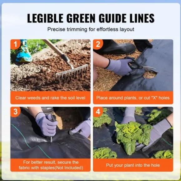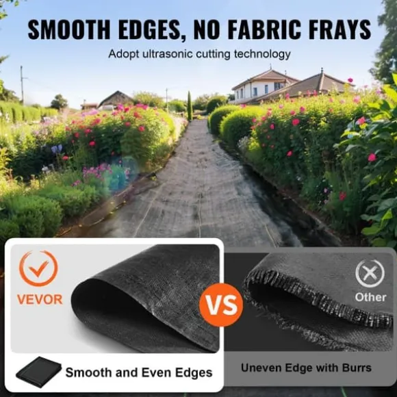 Släta & precisa kanter: Detta ogräsbekämpande duk skärs med avancerad ultraljudsteknik, vilket resulterar i släta kanter utan grader och fransar. Tillsammans med de tydliga gröna riktlinjerna för exakt trimning gör detta dina ogräsbekämpningsuppgifter enklare och sparar både tid och arbete.