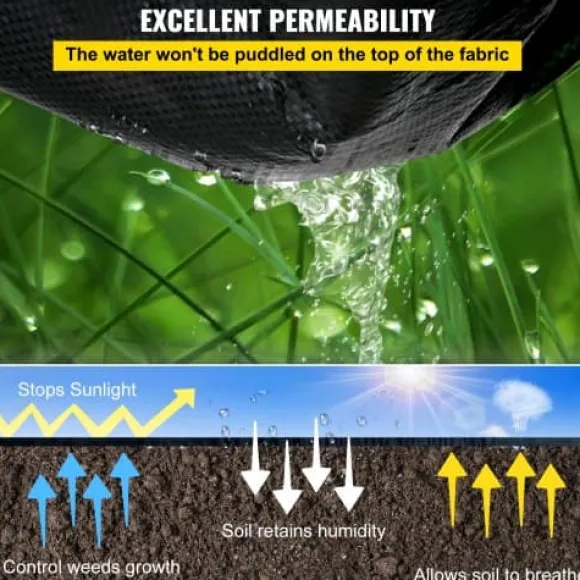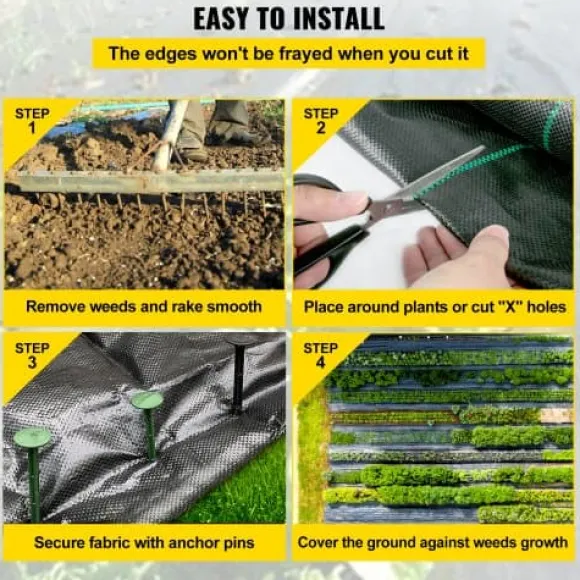 Detta premium ogräsdukstyg erbjuder hållbart och effektivt skydd för din trädgård, rabatter och landskapsprojekt. Dess höga genomsläpplighet gör att vatten och luft kan nå jorden samtidigt som ogrästillväxt förhindras, vilket hjälper till att bibehålla jordens hälsa och minska underhållet. Tyget är lätt att installera och klippa till önskad storlek, vilket gör det lämpligt för en mängd olika utomhusapplikationer.