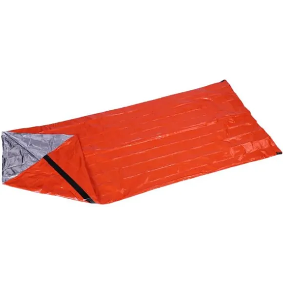 Denna nödsovsäck är gjord av PE-material, som kan reflektera värmen tillbaka till din kropp och hålla dig varm. Den är designad för att skydda dig från kylan och kan återanvändas flera gånger om den är försiktigt vikt. Vid camping kan den även användas för att stärka vindskyddseffekten utanför din sovsäck. Den ljusa orange färgen gör det lättare för räddningsteam att snabbt hitta dig i händelse av en nödsituation. Den är kompakt och praktisk, med en liten hopfällbar storlek som gör den bekväm att bära.