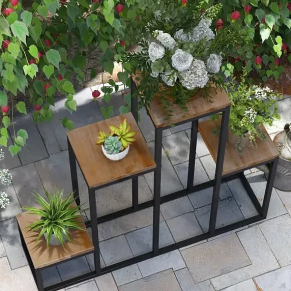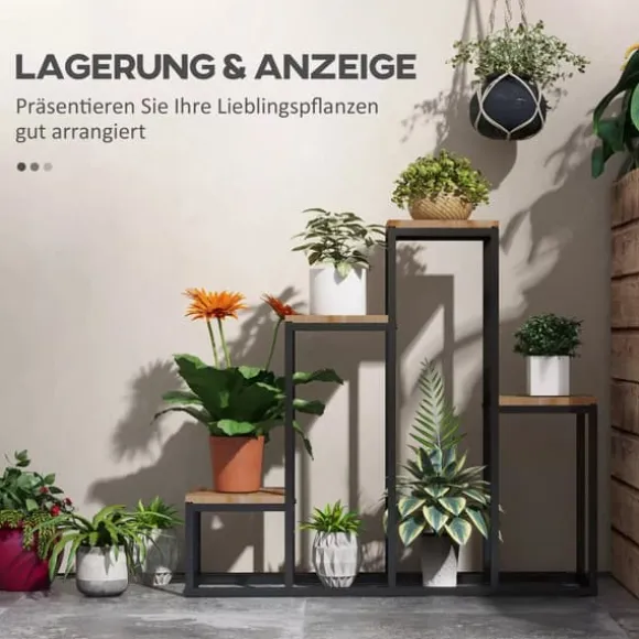 Outsunny blomsterhylla drar allas blickar till sig och ger varje rum lyster. Med sina fyra hyllplan erbjuder den eleganta utställningsytor för växter, böcker, foton och mycket mer. Den stabila konstruktionen av stål och trä garanterar långvarig användning.