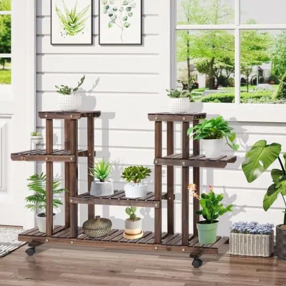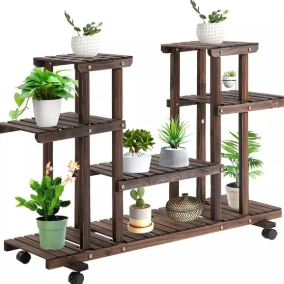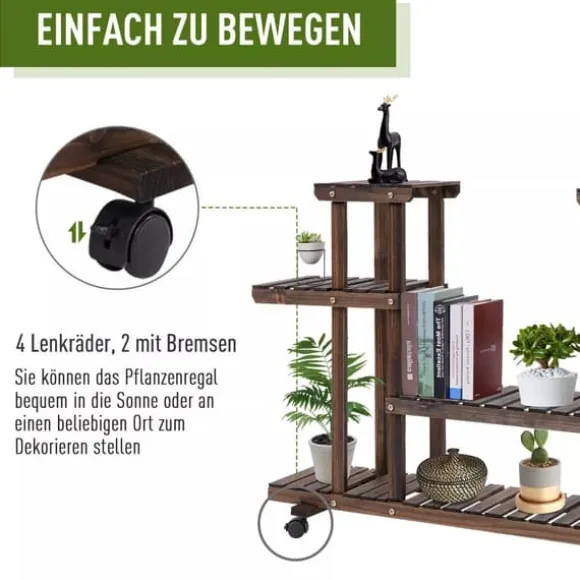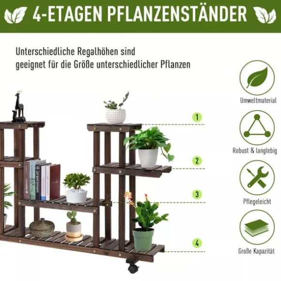 Denna mobila blomstertrappa från Outsunny har plats för upp till 8 blomkrukor. Tack vare sina 4 hjul är blomstertrappan mobil och kan enkelt flyttas från plats till plats. För en stabil och säker position är 2 hjul utrustade med parkeringsbromsar. Oavsett om det är inomhus eller utomhus – denna blomstertrappa är den idealiska förvaringsplatsen för dina växter. Men denna blomstertrappa är också lämplig som hylla för utomhusbruk. Ge dina växter ett nytt hem nu.