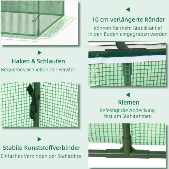 Älskar du att trädgårdsarbete och letar efter ett lämpligt sätt att utöva din hobby året runt? Detta miniväxthus från Outsunny är ett utmärkt val, eftersom det lagrar värme och skyddar dina växter från kyla och fåglar, vilket gör att dina grödor kan växa och frodas oavsett årstid. Folietunneln består av en stabil metallram och ett hållbart, robust plasthölje som främjar naturlig växttillväxt.