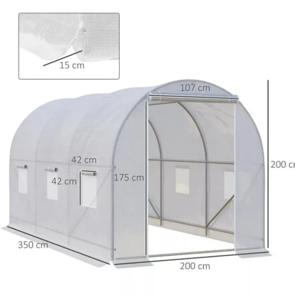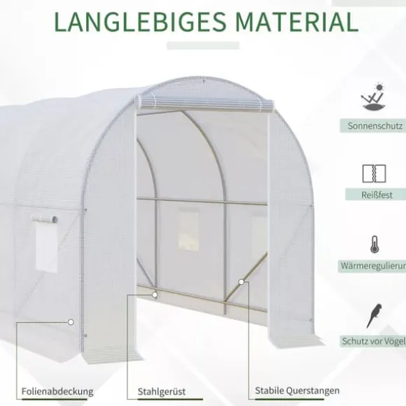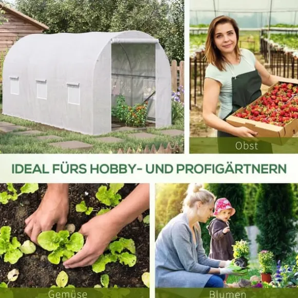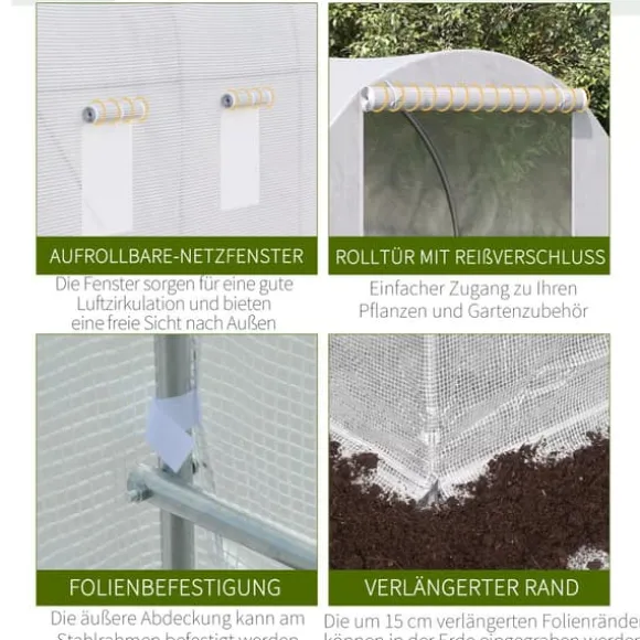 Skydda dina favoritväxter året runt mot kyla och fåglar med detta stora växthus av plast från Outsunny. Växthuset erbjuder gott om plats för en mängd olika växter och hjälper dig att skapa de ideala tillväxtförhållandena. Utförd med en stabil metallram och ett tåligt plastskydd lagras värme och fukt, och växterna skyddas från väder och vind. Upprullbara fönster hjälper dessutom till att reglera innertemperaturen och lufttillförseln.