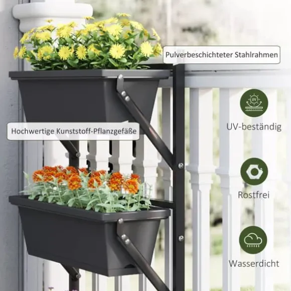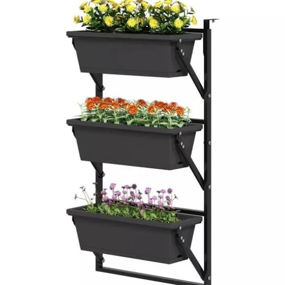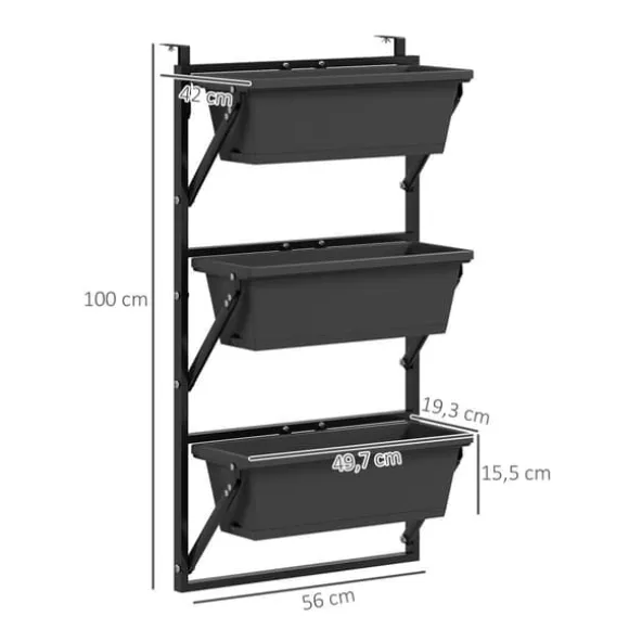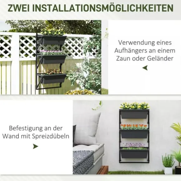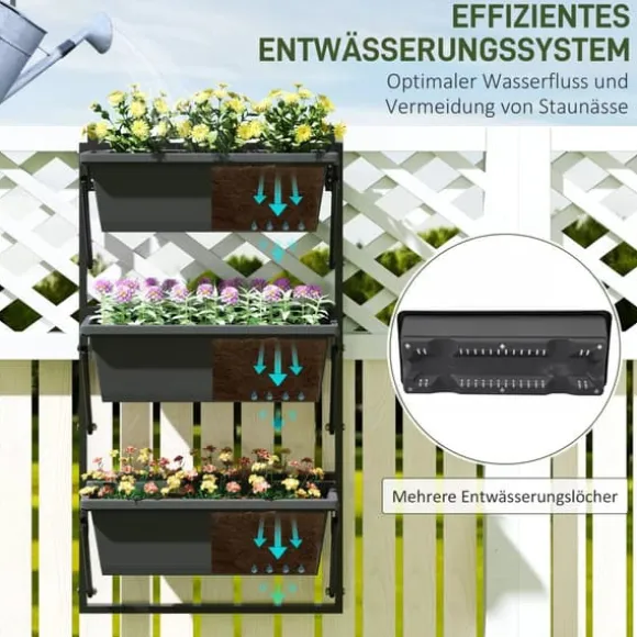 Förvandla din uteplats till en blomstrande trädgård med Outsunny utomhusväxtkruka! Denna tredelade vertikala planteringskärl med 10-literskrukor gör det möjligt att plantera ett färgglatt urval av blommor, grönsaker eller örter. Den genomtänkta designen med flera dräneringshål förhindrar att den stora utomhusväxtkrukan samlar vatten och främjar dina växters tillväxt. De olika upphängningsmöjligheterna för växtkrukan kommer att lysa upp ditt staket, din vägg eller din balkongräcke.