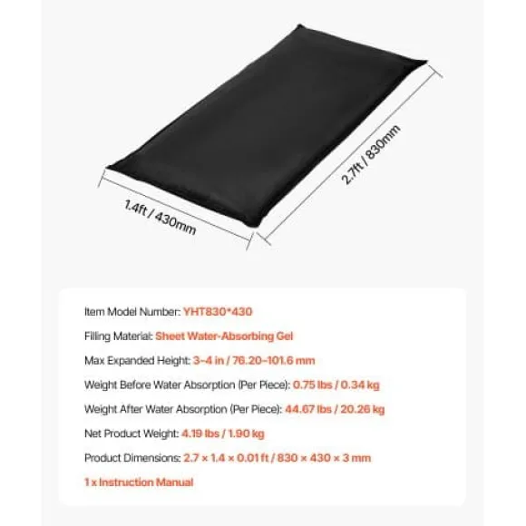 - Fyllnadsmaterial: Platt vattenabsorberande gel