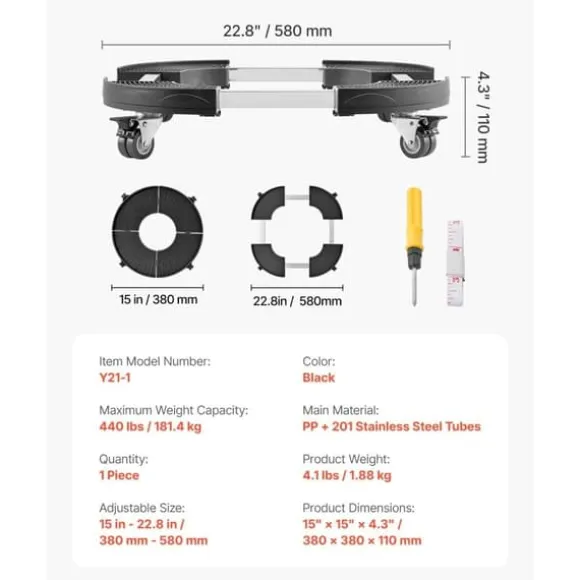 I paketet ingår allt du behöver för snabb installation, inklusive ett måttband och skruvmejsel. Produkten har dimensioner på 15″ x 15″ x 4,3″ och en maximal viktkapacitet på 440 lbs. Den är tillverkad av reptålig PP-panel och rostfria rör, vilket garanterar hållbarhet och pålitlighet.