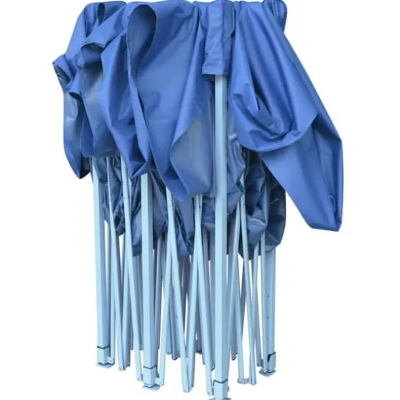 Det här pop-up-tältet är extremt slitstarkt och är tillverkat av kraftigt pulverlackerat stål. Taket är gjort av oxfordtyg med PVC-beläggning och är 100% vattentätt och UV-skyddande. Tältet är hopfällbart för enkel förvaring och transport.