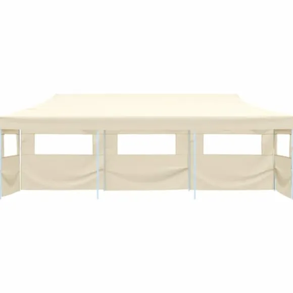 Detta partytält har ett UV- och vattenresistent tak som är tillverkat i oxford med PVC-beläggning och är därför perfekt för användning utomhus. Partytältet är utformat med 5 avtagbara sidoväggar med klara fönster för fullt skydd. Ramen är tillverkad i rostbeständigt stål, vilket gör tältet stadigt och hållbart. Pop-up tältet är hopfällbart för enkelt förvaring och transport. Det är lätt att montera.