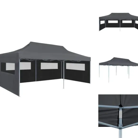 Detta partytält har ett UV- och vattenresistent tak som är tillverkat i oxford med PVC-beläggning och är därför perfekt för användning utomhus. Partytältet är utformat med 3 avtagbara sidoväggar med klara fönster. Ramen är tillverkad i rostbeständigt stål, vilket gör tältet stadigt och hållbart. Pop-up tältet är hopfällbart för enkelt förvaring och transport. Det är lätt att montera.
