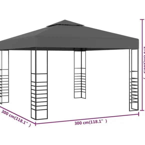 Ramens konstruktion i stål är stark och stabil medan taket i 100% polyester har fått en polyamidbeläggning för att skydda dig från solens skadliga UV-strålar eller regnet. Den eleganta öppna designen ger bättre luftgenomströmning och ökad komfort. Den är enkel att installera.
