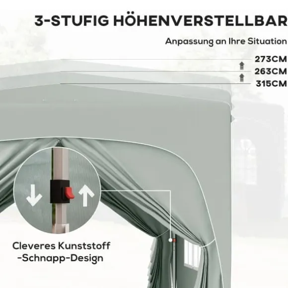 – Höjdjusterbar: De tre stegs justerbara metallbenen på detta trädgårdstält gör det enkelt att justera höjden (273/263/253 cm), vilket är perfekt för olika utomhusevenemang och personliga preferenser.