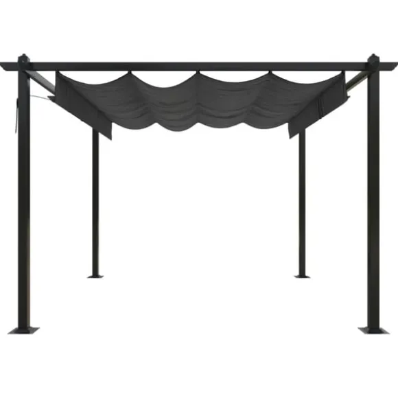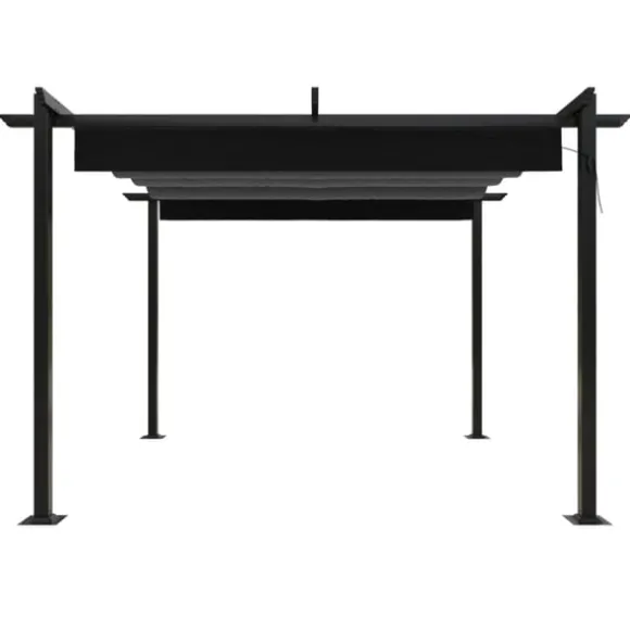 Detta utomhuspaviljong är tillverkat med en pulverlackerad stålram, vilket gör det robust och stabilt. Paviljongen är utrustad med ett infällbart PA-belagt tak, som är UV- och vattenbeständigt. Du kan enkelt rotera och justera taket till perfekt position genom att helt enkelt skaka handstången. Öppna det när du vill njuta av solen och stäng det för skugga eller skydd. Detta paviljong är ett perfekt val för dina utomhusaktiviteter.