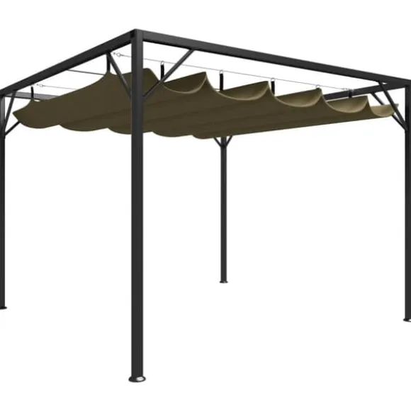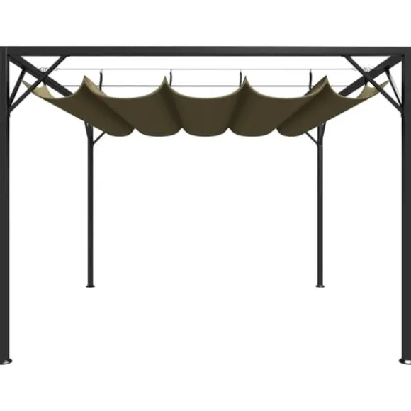 Paviljongen är lämplig för flera typer av väder; dess infällbara tak skyddar dig mot skadliga UV-strålar och även från regn. Paviljongen består av en pulverlackerad metallram och ett vattenbeständigt tak i 100% polyester.