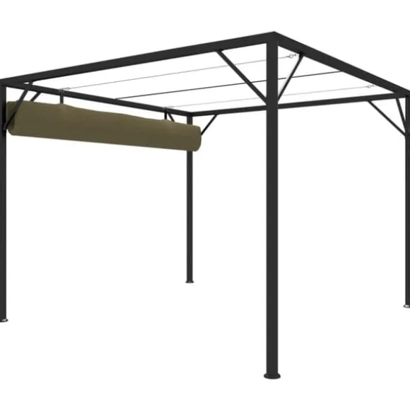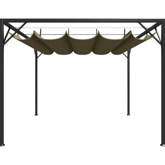 Paviljongen är lämplig för flera typer av väder; dess infällbara tak skyddar dig mot skadliga UV-strålar och även från regn. Paviljongen består av en pulverlackerad metallram och ett vattenbeständigt tak i 100% polyester.